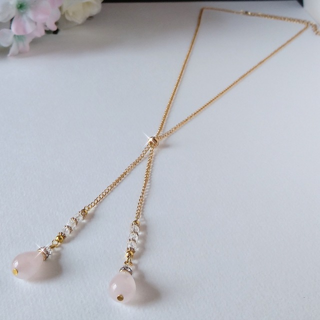 『10月の誕生石』ローズクォーツと水晶の天然石 ネックレス ペンダント