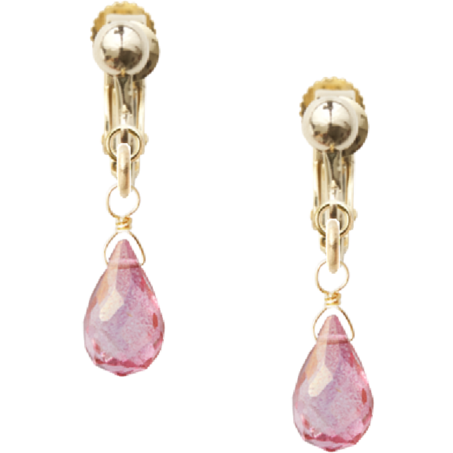 『11月の誕生石』ピンクトパーズ 天然石のバネ式イヤリング