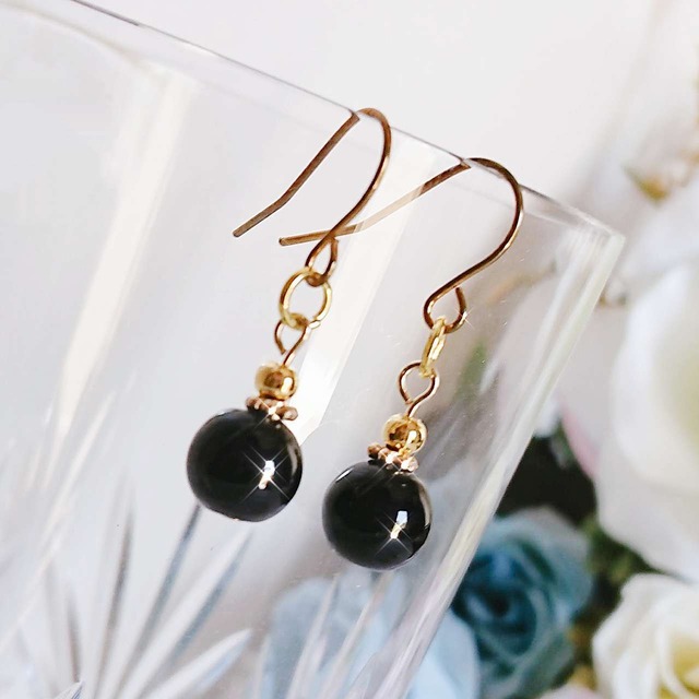 【8月の誕生石】黒瑪瑙 オニキス 天然石 ピアス イヤリング [August birthstone] Onyx natural stone earrings 玛瑙黑色天然石耳环 天然石耳環