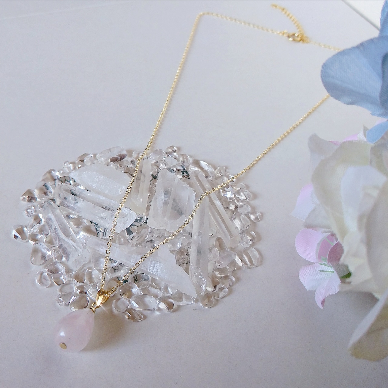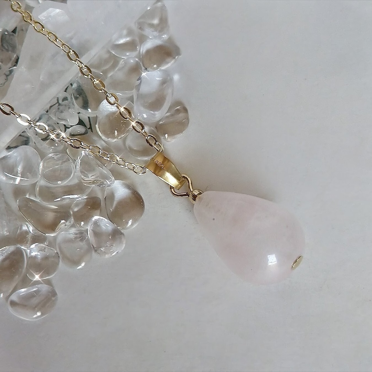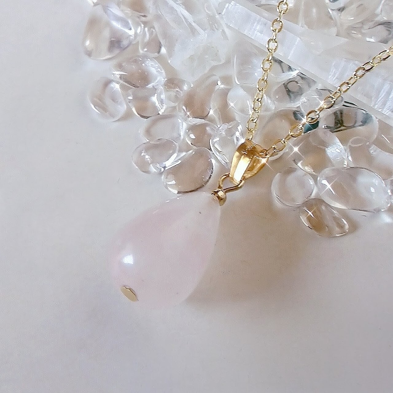 『10月の誕生石』ローズクォーツ 天然石 14kgf ネックレス ペンダント