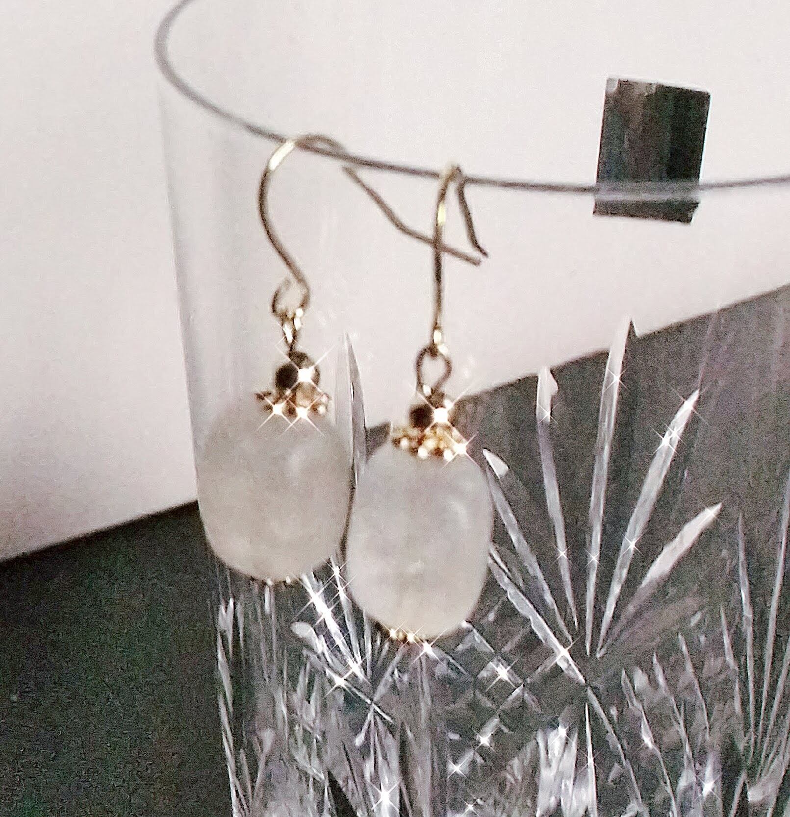 アゲート 氷のような瑪瑙 天然石のピアス イヤリング