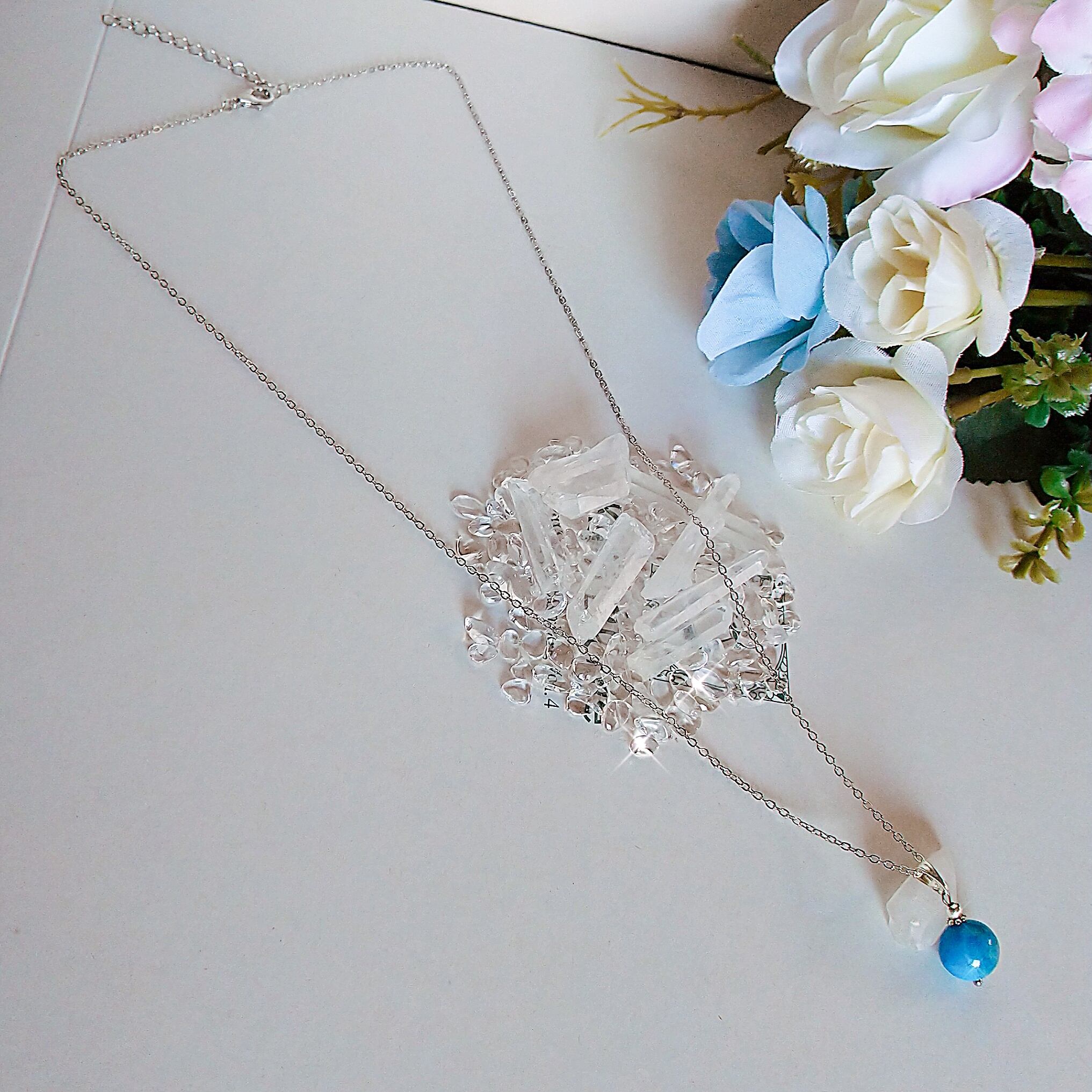 天然石 アパタイトのサージカルステンレス ネックレス ペンダント Natural stone apatite stainless steel necklace pendant 天然石材磷灰石不锈钢项链